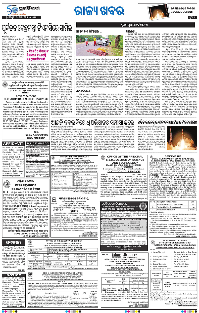 Sambalpur-17-05-2025 Page: 5 May 17, 2025 pragativadi epaper sambalpur edition today 3 4 5 6 Page 1Page 2Page 3Page 4Page 5Page 6Page 7Page 8Page 9Page 10Page 11Page 12 × Sambalpur-17-05-2025 Sambalpur-17-05-2025-01Sambalpur-17-05-2025-02Sambalpur-17-05-2025-03Sambalpur-17-05-2025-04Sambalpur-17-05-2025-05Sambalpur-17-05-2025-06Sambalpur-17-05-2025-07Sambalpur-17-05-2025-08Sambalpur-17-05-2025-09Sambalpur-17-05-2025-10Sambalpur-17-05-2025-11Sambalpur-17-05-2025-12 << First << 5 >> Last >> Page No 1Page No 2Page No 3Page No 4Page No 5Page No 6Page No 7Page No 8Page No 9Page No 10Page No 11Page No 12